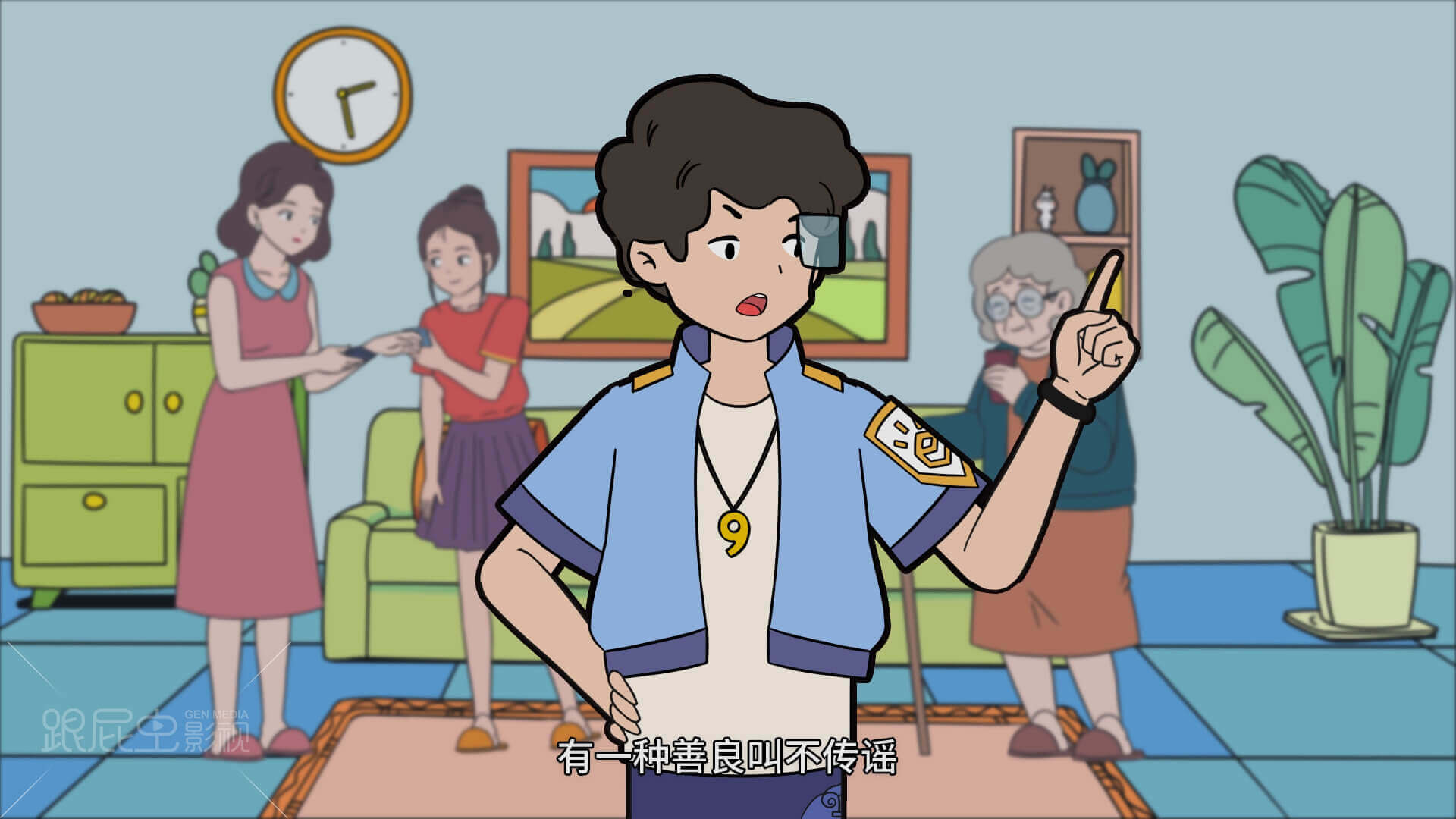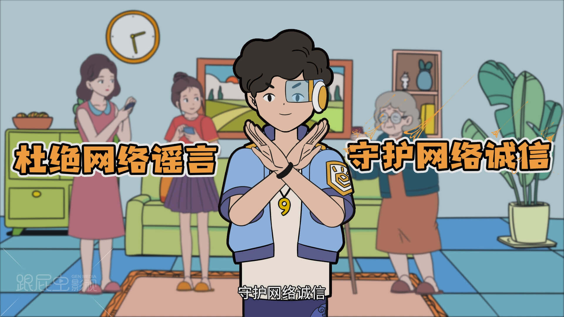 “賦能杭州好網民”網絡素質公開課以網絡安全衛士與市民互動,提醒市民不信謠、不傳謠的重要性。杭州市網信辦,余杭區網信辦聯合出品,跟屁蟲影視制作。制片:黃眉導演:獅駝美術:可韓/仁貴/接引/十八動效:皇后/四余/總兵/虎力